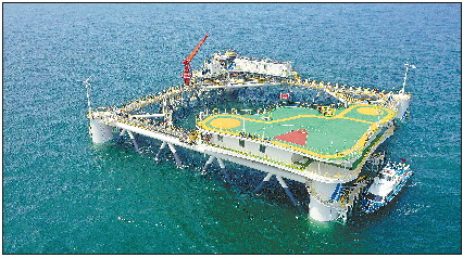 在南隍城岛东部海域的“经海1号”坐底式智能网箱。 齐鲁晚报·齐鲁壹点通讯员 聂英杰 摄
