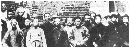 枣庄药业公会1935年成立时会员合影,左一为褚雅青。