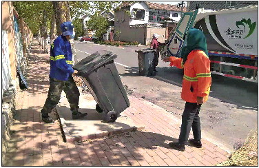 环卫中心到村里收垃圾。