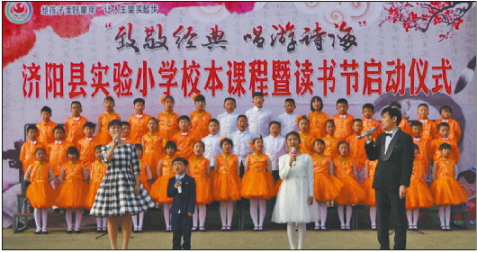 现在,预备铃后、早读时间、放学路队以及每周一的升旗仪式上,孩子们吟唱古诗已经成为学校一道亮丽的风景。
