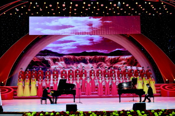 “唱支山歌给党听,我把党来比母亲……”一曲《唱支山歌给党听》拉开了演出的序幕。整场演出亮点纷呈,高潮不断,大合唱《保卫黄河》、歌舞《在希望的田野上》、配乐诗朗诵《经山历海》、情景演唱《日照海天》等节目接连上演。一曲曲红歌、一幕幕精彩的演出带领现场观众一同穿越历史的烽烟,重温党的光辉历程,在时代的乐章里唱响奋进新征程的赤诚与豪迈。全场的观众热情高涨,掌声不断。