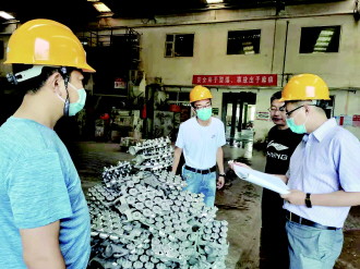 枣庄市生态环境局市中分局执法人员正在企业检查