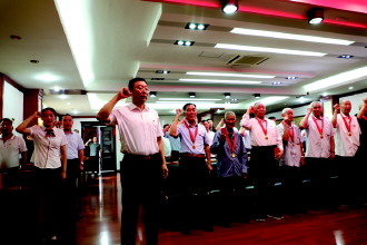 6月27日,西岗镇举行“光荣在党50年”纪念章颁发仪式,全镇“光荣在党50年”纪念章获得者代表及2021年新发展党员重温了入党誓词。党员们纷纷表示,要向老党员学习,赓续红色基因、传承优良传统,进一步坚定理想信念、涵养为民情怀、激发担当作为、锤炼优良作风,凝心聚力、奋勇争先,为乡村振兴示范镇建设,再立新功、再创佳绩,以实际行动续写新的篇章。 (卓德明)