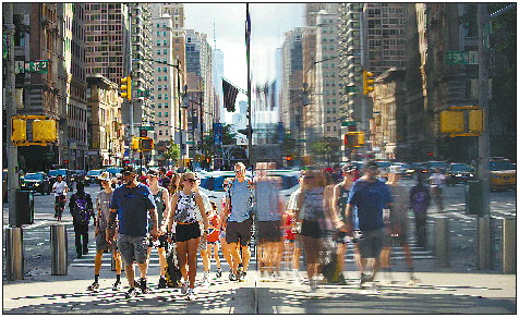 6月15日,人们走在纽约街头。纽约州当天起放松大部分防疫限制措施。 新华社发