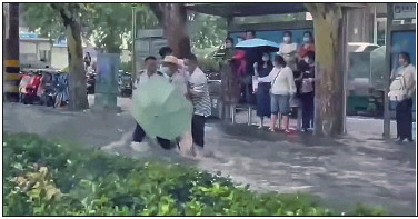 视频中,大雨如注,路边水流很急,老人踉踉跄跄,一位公交司机和两位热心市民冲进雨中,有人给老人撑伞,有人扶住老人,然而他们自己却被淋得湿透……
