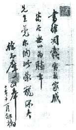 这几十个字,分作四行。不说字了,布局之得体,不是书法上训练有素的人,先就摆弄不了。而其字体,除了“凋”字第四笔的横折钩,竖画格外粗壮,颇得郑孝胥之笔意,也可说是学下了此老的毛病。整体看来,那个劲道,那个得体,你不能不承认幼仪的四哥张嘉璈(公权)先生10年前仅凭着字体就看上了这个小妹夫,是极具眼光的。