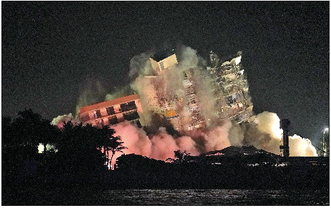 7月4日,美国佛罗里达州迈阿密-戴德县的坍塌住宅楼被爆破拆除。 新华/美联