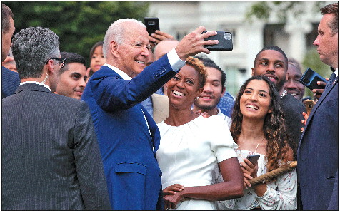 当地时间7月4日,美国总统拜登在白宫发表独立日庆祝活动演讲。图为拜登与民众合影。IC photo