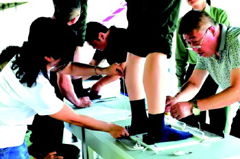 接到任务后,金猴集团迅速组建了一支由全国技术能手、行业技术能手、齐鲁工匠、威海工匠、首席技师组成的300人的生产团队,同时选调30余名顶尖设计师奔赴北京,为参会人员逐一测量、精心设计、量脚定制,最终用一丝不苟、精益求精的匠心圆满完成任务。
