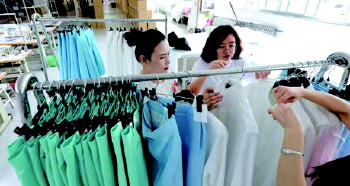 “面对这一光荣使命,迪尚集团第一时间组织由40余名顶尖工艺技术人员组成的团队,上门为北京49所学校的参演人员逐个量体,并随人员调整不断更新量体数据,仅样衣制作就超过了500件。”全国劳模、迪尚集团董事长朱立华介绍,大会服装看似简洁的款式却暗含着匠心独运的设计——衬衣腋下的透气排汗孔清凉透气、“连体衬衫”确保抬手时衬衫不上窜,专门设计的“徽章定位点”和无线麦克隐藏收纳袋等确保画面整洁。