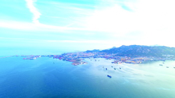 石岛湾港口群和造船基地远眺。(石宣 摄)