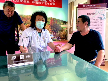 有着24年党龄的威海曙光中医院内科李健教授,是曙光党员专家义诊服务队的敬老先锋。