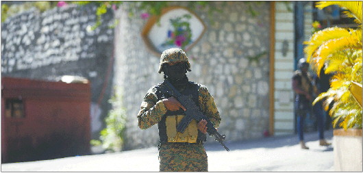 7月7日,在海地首都太子港,一名士兵在海地总统莫伊兹的住所旁执勤。 新华社发