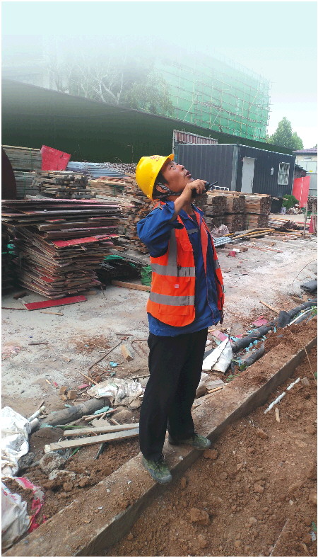 ▲郇政华在潍坊一个建筑工地做泥瓦匠。