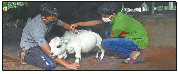 7月8日,两名男子在孟加拉国首都达卡附近萨瓦尔一处农场为奶牛“拉妮”测量身高。这只名为“拉妮”的奶牛高约51厘米,重约26千克。这只奶牛的主人正在为其申请“世界最小奶牛”吉尼斯世界纪录称号。 新华