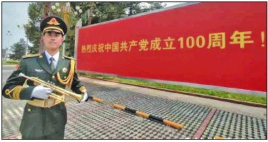 “今年三月份接到单位的通知有选拔军乐苗子的消息,我立刻报了名。”最后得知顺利通过层层选拔获得演奏名额的消息后,陈玉恒欣喜若狂,全身心地投入到参加庆祝中国共产党成立100周年大会任务准备中。小号是乐队中的核心乐器组成部分,作为一名小号演奏员,陈玉恒深知重要性,想要演奏好小号不是一件容易的事,必须追求卓越,半点差错都不能出。经过两个月的训练,他熟练地把七首暖场曲目,五首仪式曲目做到了熟记于心,分秒不差地背奏下来了。