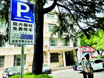 7月3日上午,在红星中路济宁市信访局大院,办公楼前特意在醒目位置竖起了一个“院内限时免费停车”以及“限时免费停车指南”的提示牌,门口进车起落架也一直处于抬起状态,宽阔的停车场上不少私家车正有序停放。而这些私家车主多是准备送孩子去青少年宫参加培训的市民。