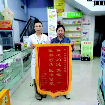 “蔡店长,感谢你这几年来的贴心服务!”市民刘女士边说着感谢的话边将一面写有“医术可信、医德可敬、热心为民、温暖一方”的锦旗交到了日照市真诚大药房店长蔡梅的手里。