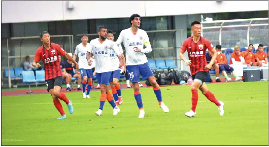 中超休赛期间,泰山队积极备战下一阶段联赛。图为泰山队与海港队进行热身赛。 IC Photo
