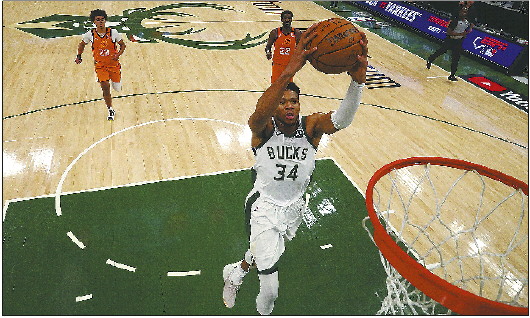 ◥“字母哥”靠实力将雄鹿从悬崖边拉了回来。 IC Photo