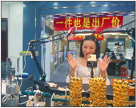饰品企业金玉祥和的主播正对着摄像头热情地推销。