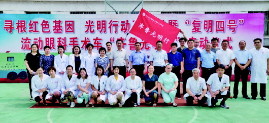7月14日上午,山东第一医科大学附属省立医院“寻根红色基因 光明行动再出发”暨“复明四号”流动眼科手术车“齐鲁光明行”启动仪式在沂水县诸葛镇中心卫生院举行。