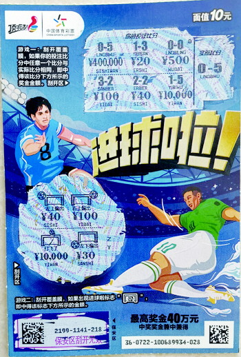7月8日下午,体彩威海分中心兑奖大厅喜迎一位青年购彩者孙先生,他很淡定地拿出一张10元的“进球啦”顶呱刮即开票,让兑奖工作人员确定是否中奖。当得知自己确实中得40万大奖时,很开心地对工作人员说,看样子自己今天的运气的确不错,兑奖的路上再中奖!