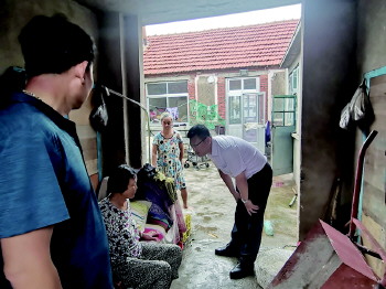 ▲图为文登区泽库镇纪委到后岛村低保群众家中查看房屋安全情况。