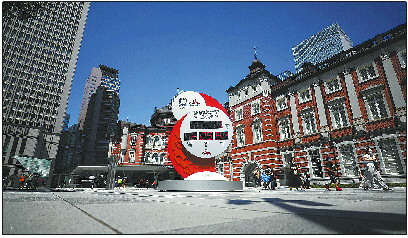 东京车站前广场上的奥运倒计时电子时钟。 新华社发