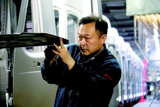 车门外型一圈下来近五米长,整个型面每1厘米就有一个点,于伟和同事们需要对每个点进行研配试验。从一开始的几百次,到后来的几十次,白加黑研究,一遍遍做包边试验是当时的工作常态。因为工期紧、压力大,做到一半的时候有4个人退出了,只剩下于伟等4人还在坚持。