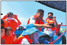 壹粉乘船海岛游,品尝刚捕捞的海胆。