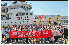在平台上,山东南隍城海洋开发有限公司生产部经理葛茂武说,凭借南隍城岛得天独厚的自然资源优势,公司建设了全国首个以鲍鱼为主题的深远海坐底式海珍品智能网箱“国鲍1号”。网箱长36米,宽36米,吃水21米,三个养殖区共悬挂36988个海珍品养殖笼,可年产优质鲍鱼、海胆等海珍品70-120吨。