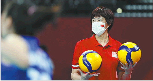 7月25日,中国女排主教练郎平(右)在赛前。 新华社