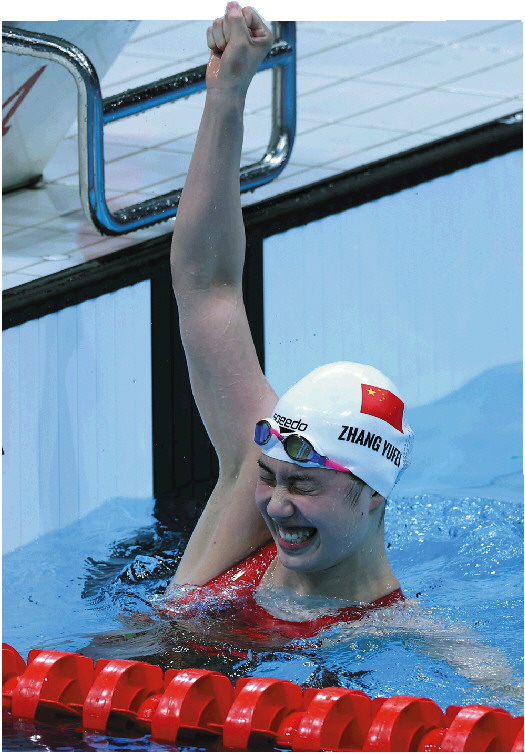 7月29日,张雨霏在比赛后庆祝。 新华社发