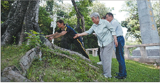 亲人们将从老家带来的家乡土撒在了纪念碑旁的大树上,让烈士能感受到来自家乡的温暖。