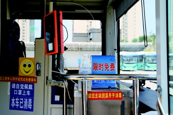“现在是免费乘车时间,不用刷卡、投币了。”1路公交车驾驶员张师傅不时地出声提醒着。随后上车的乘客径直“无视”面前的刷卡机和投币箱,走进车厢落座。