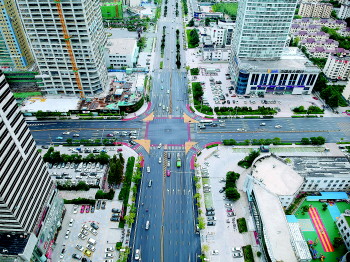 记者在烟台路和济南路交会处看到,济南路段西向东、东向西均已改为六车道,并设置了双左转车道,烟台路南向北、北向南行驶方向均已改为五车道。
