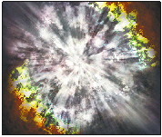 这张美国国家航空航天局提供的图片显示的是超新星爆发的景象。澳大利亚国立大学研究人员日前发表公报说,他们与多国研究人员合作,捕捉到了超新星爆发的“最初景象”。这是天文学家第一次细致地观测到完整的超新星爆发过程,有助于研究宇宙起源。超新星是某些恒星在演化接近末期时经历的一种剧烈爆炸。 新华