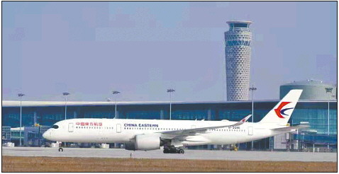 飞机在刚刚启用的胶东国际机场准备起飞。