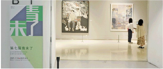 “青未了——山东省高等学校美术院系应届毕业生优秀作品展”是由山东省文化和旅游厅、山东省教育厅主办,山东美术馆及各高等学校美术院系承办,是馆校联合举办的大型展评活动。自从2014年以来,“青未了”至今已经举办了七届。为鼓励青年人突破创新,从第五届“青未了”开始,在奖项设置上进行了调整。不再设一、二、三等奖,而是自入选作品中评出“优秀奖”作品30件,其中包括“新创意奖”作品5件,“新语言奖”作品5件。力图以新锐的视角挖掘青年的当代探索精神,并提倡全新的展示方式。