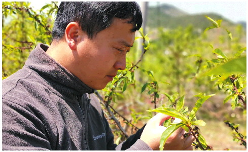 蚜虫,是一种很难对付的害虫,对桃子的品相影响很大。在当地,一般都是等开花后,发现了蚜虫再去打药,但这个时候病虫害已经很严重了。邱锋和郭艳艳主张在花还没开,刚刚露红的时候就用药。对此,很多果农觉得他们是在开玩笑,花还没开打什么药?“很多果农对蚜虫发生规律掌握不准,需要慢慢去通过实验来引导。”
