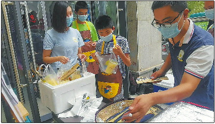 19日星空小卖部开业的第二天,实际上,这里除了提供商品销售之外,张洪波还带着孩子们开创了一项新业务,那就是“星空爱心外卖团”,他们每天都会在微信群里公布菜单,接受预定,而同时在校园里的孩子们也会辅助洗菜、装盒等工作,这些盒饭再运输到星空小卖部进行发放。试运行几天以来,爱心外卖团生意不错,也赢得很多回头客,这其中大多是创益园里的公益团体以及周边写字楼宇的爱心人士。