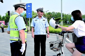 “这位同志,请把头盔戴上。”“你这样戴头盔形同虚设,最好把头盔安全带系上。”这是记者在菏泽高新区昆明路与黄河路十字路口看到民警劝导电动车驾驶员的一幕。
