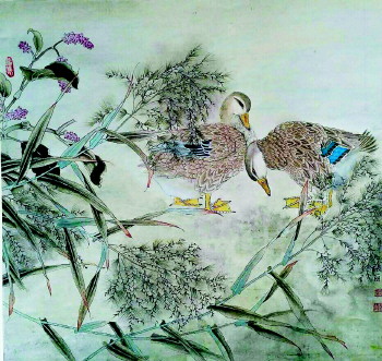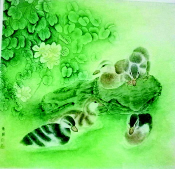 张丽的工笔画在继承传统工笔花鸟画技法的基础上,从自然生态、环境审美观念出发,还有山石、蒲草、芦苇、藤蔓、禽鸟,共同构成一个富有生命的艺术有机体,结构造型合理、颜色鲜艳明快、立意新颖,有直击心灵的美感!其创作的源泉还是现代环境意识的介入和重视写生的结果,她把自然生态及所依存的环境作为审美与师法的对象,作为艺术心灵关照的重点。