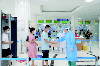 进入医疗大楼,就诊群众挂号后将进入候诊区,分诊护士会按照预检分诊流程对就诊群众进行第二次预检。据了解,目前,烟台毓璜顶医院各楼层各候诊候检区域实行半封闭管理,分诊护士须对候诊区就诊患者及陪护进行复测体温、查验电子健康码,并指导患者手消毒才可进入诊室或检查室。