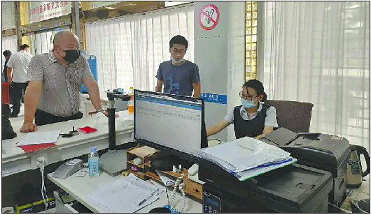 ◤工作人员正在给侯先生办理不动产权证书业务。