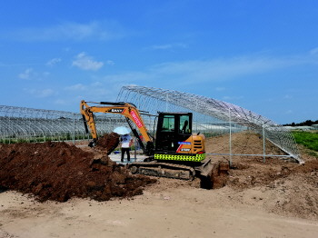 中心店镇建设中的草莓大棚。
