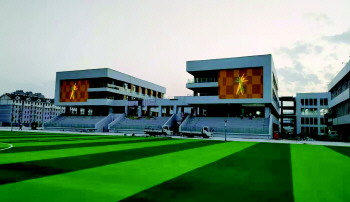 潍坊高新智谷学校目前室外景观及配套场馆正在全面收尾,即将全部完工。