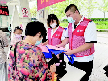 24日,公交隧道巴士第一分公司和第二分公司“暖行”志愿者在薛家岛枢纽站悬挂了“节能降碳 绿色发展”的横幅,为来往乘客发放《全国节能宣传周倡议书》,倡导市民积极参与节能减排低碳生活,做节能低碳、保护环境的实践者。