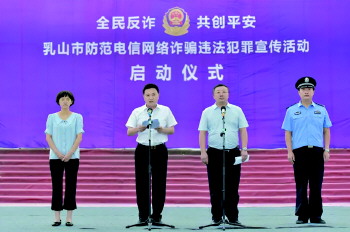 8月17日下午,乳山市在东方大厦广场举行防范电信网络诈骗违法犯罪宣传活动启动仪式,市委常委、政法委书记刘培根出席仪式并讲话,市政府副市长、市打击治理电信网络新型违法犯罪联席会议总召集人、市公安局党委书记、局长刘新主持仪式,市打击治理电信网络新型违法犯罪联席会议成员单位分管负责人,各镇区分管负责人、市公安局党委班子成员及各室所队主要负责人、青年志愿者代表共300余人参加启动仪式。